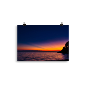 • Night skyline with beautiful sunset on Mediterranean coastline – Poster