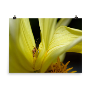 • Yellow flower and small bug hidden inside – Matte Paper Framed Poster With Mat