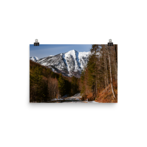 • Winter mountains and a road in Austrian Alps – Photo paper poster
