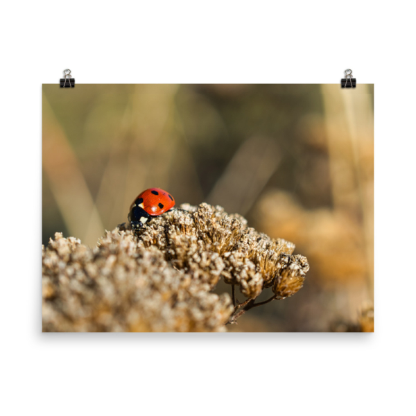 Night skyline with beautiful sunset on Mediterranean coastline – Matte...Autumn photo of a Ladybug on a gold background – Poster