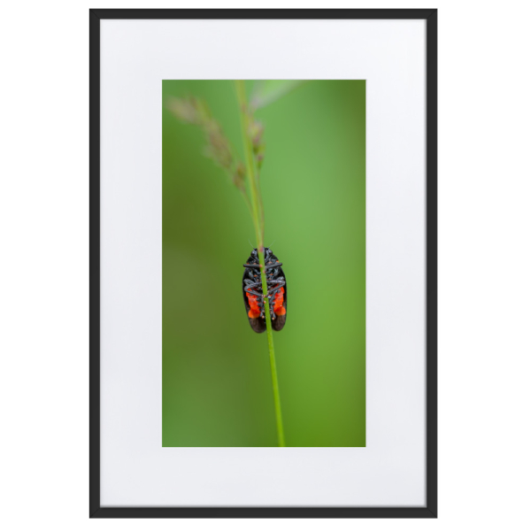 Blister Beetle on a green background – Matte Paper Framed Poster With Mat