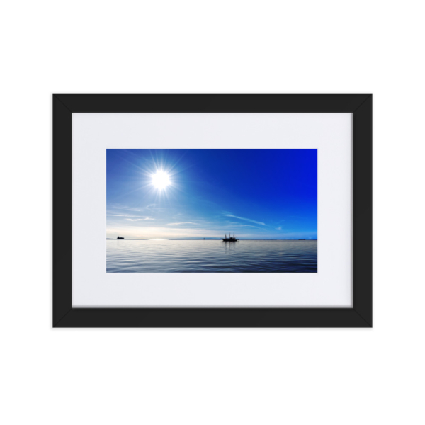 Blue sky and sea near Thessaloniki, Greece – Matte Paper Framed Poster With Mat