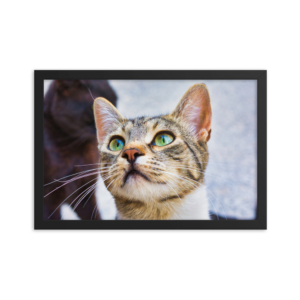 • Photo of a grey and white stray cat – Framed poster