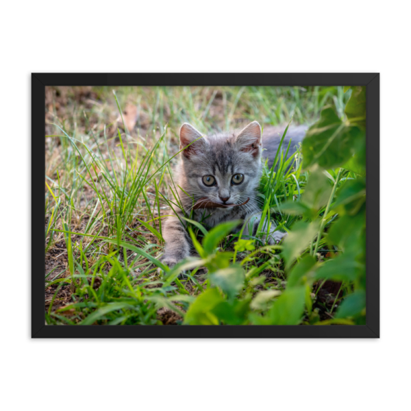 Grey colour female kitten hunting bugs – Framed poster