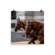 Grey colour female kitten hunting bugs – Laptop SleeveTwo brown harnessed horses – Poster