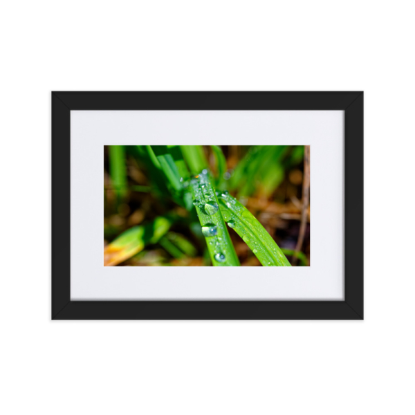Macro photo of a grass and rain drops – Matte Paper Framed Poster With Mat