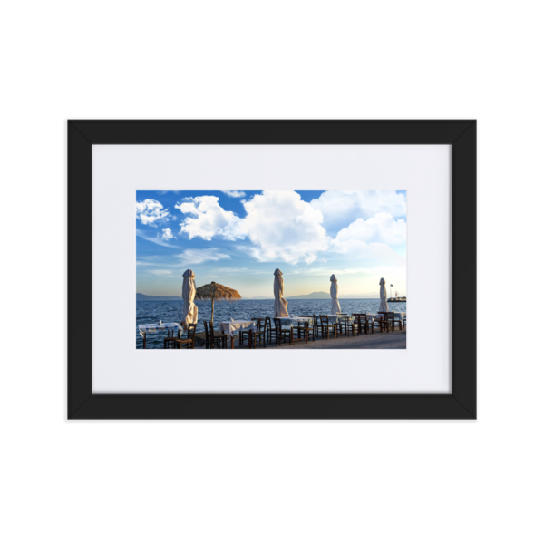 Mediterranean sea scenery, greek tavern – Matte Paper Framed Poster With Mat