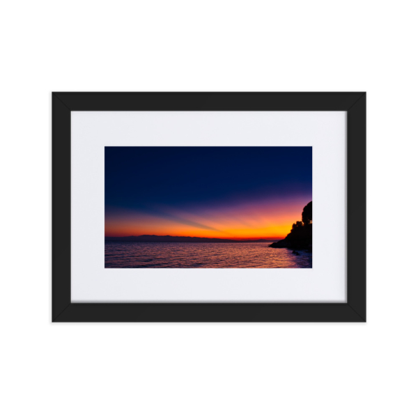 Night skyline with beautiful sunset on Mediterranean coastline – Matte Paper Framed Poster With Mat