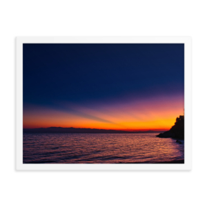 • Night skyline with beautiful sunset on Mediterranean coastline – Framed poster