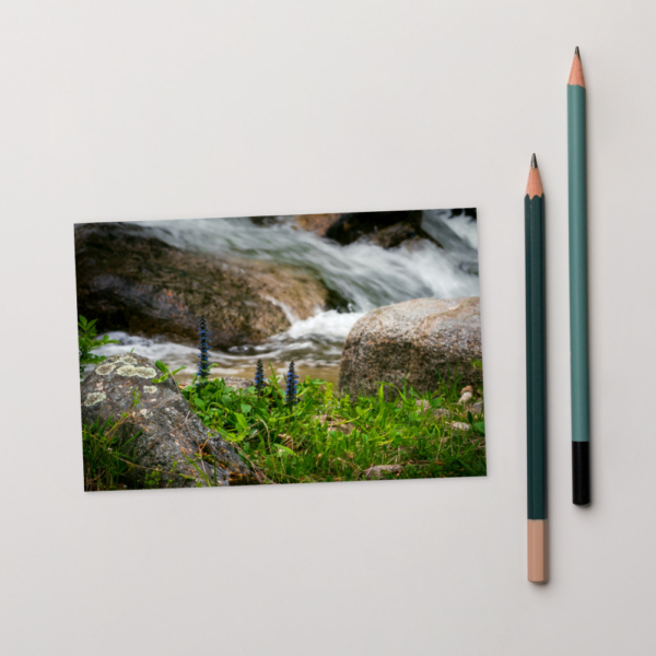 Relaxing photo of mountain flow and flowers – Standard Postcard