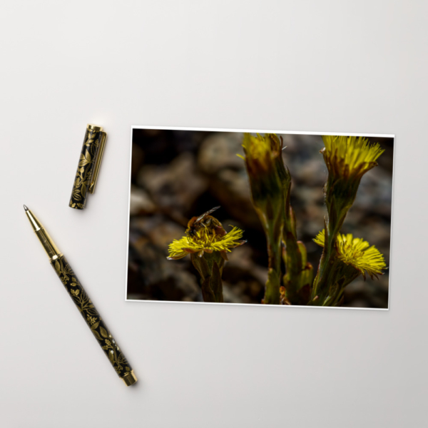 Spring photo of yellow flower and bumblebee pollinating – Standard Postcard