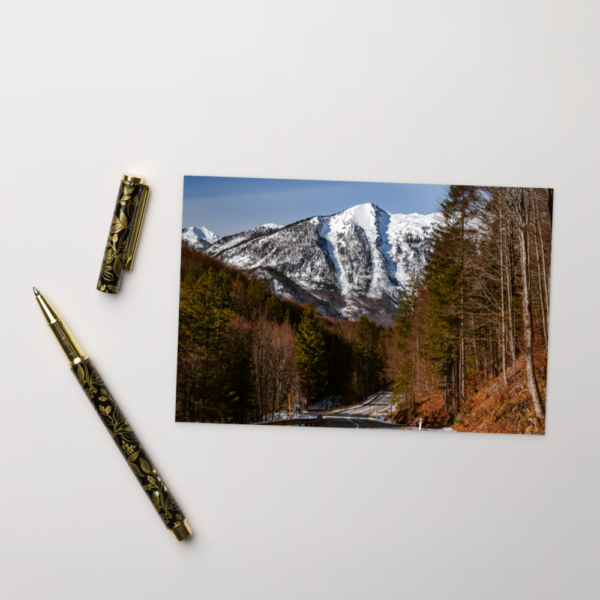 Winter mountains and a road in Austrian Alps – Standard Postcard